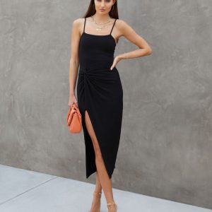 Be the first to review “Adelina Twisted Front Slit Midi Dress”