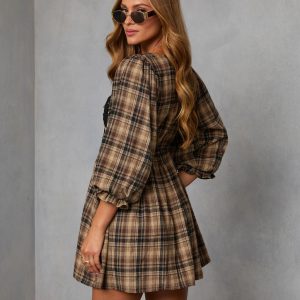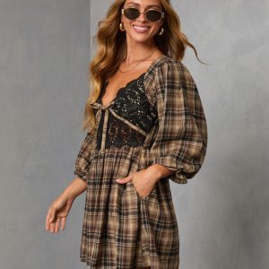 Be the first to review “Ajah Plaid Lace Bust Mini Dress”