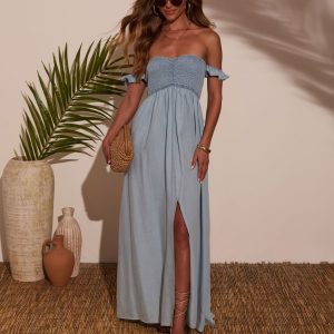 Be the first to review “Benitta Off The Shoulder Chambray Maxi Dress”