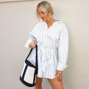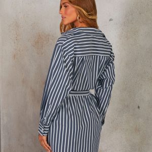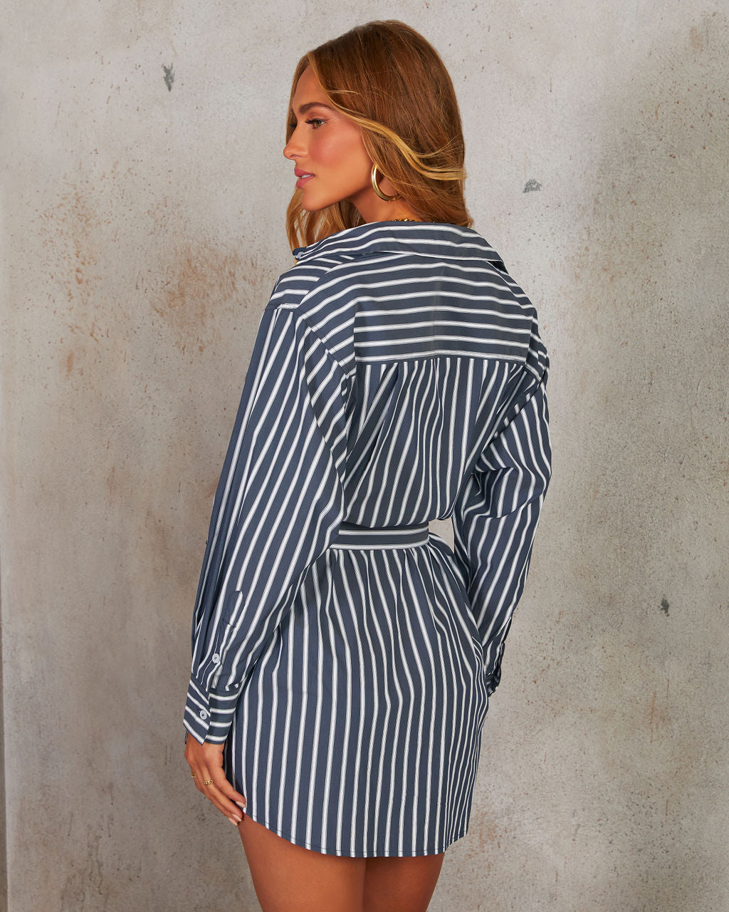 Be the first to review “Between The Lines Waist Tie Mini Shirt Dress”