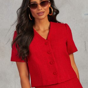 Be the first to review “CC Me Tweed Button Down Top”