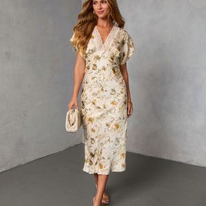 Be the first to review “Charla Printed Lace Trim Satin Midi Dress”