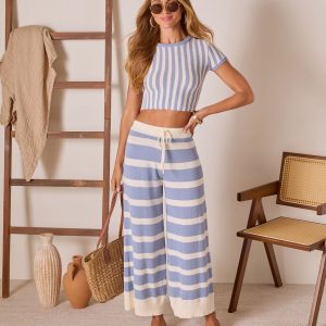 Be the first to review “Coastal Ease Striped Knit Drawstring Pants”