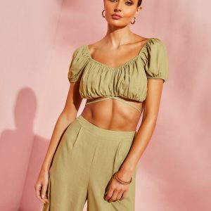 Corsicana Linen Waist Tie Crop Top