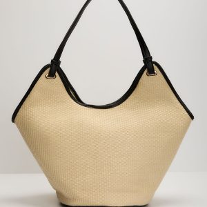 Edien Contrast Trim Straw Tote Bag