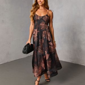 Ember Whisper Printed Fit And Flare Maxi Dress