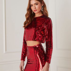 Gillian Sequin Long Sleeve Crop Top