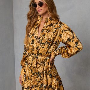 Be the first to review “Golden Orchard Wrap Tie Mini Dress”