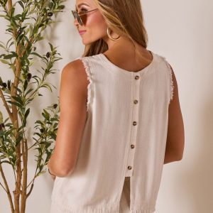 Be the first to review “Grecian Glow Frayed Linen Top”