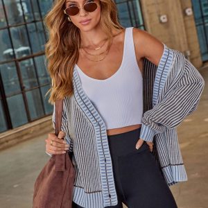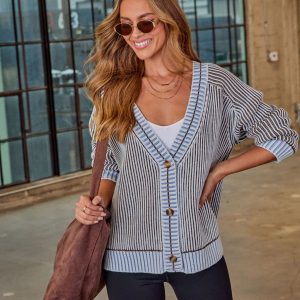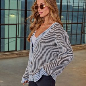 Be the first to review “Hamina Ribbed Knit Contrast Trim Cardigan”