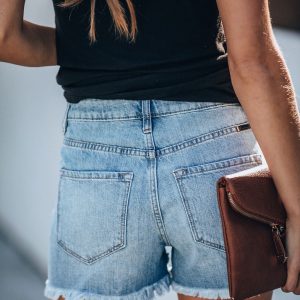 Be the first to review “Hazel High Rise Distressed Denim Shorts”