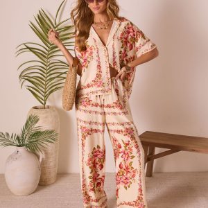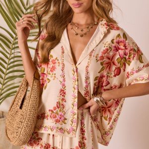 Be the first to review “Hibiscus Haze Abstract Printed Button Up Top”