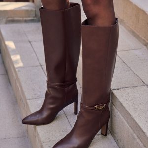 Be the first to review “Isobelle Vegan Leather Chain Accent Knee High Boots”