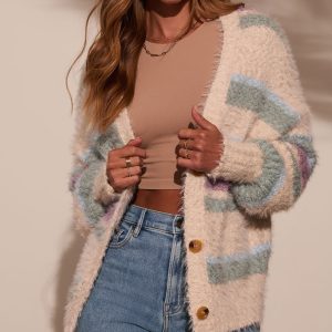 Be the first to review “It’s Your Moment Fuzzy Knit Striped Cardigan”