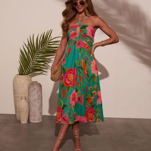 Be the first to review “Jessica Floral Halter Midi Dress”