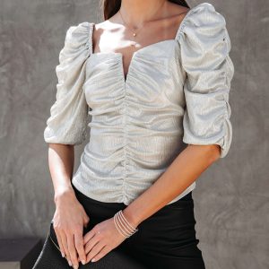 Be the first to review “Just Fabulous Metallic Ruched Top”