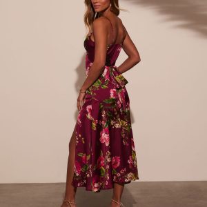 Just Go With It Satin Slit Midi Dress