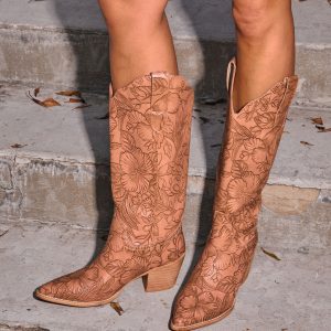 Be the first to review “Katinna Embossed Floral Western Boots”