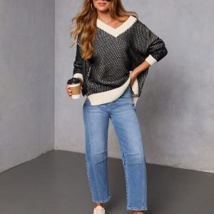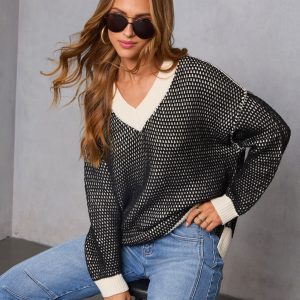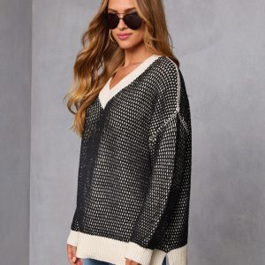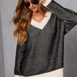 Be the first to review “Lesiette Contrast Crochet Knit Sweater”