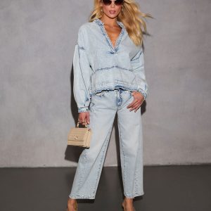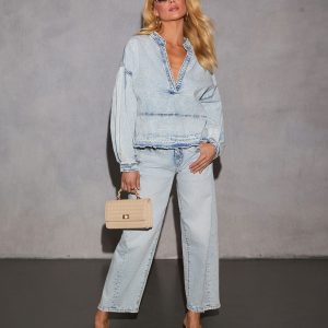 Lisbon Relaxed Plunging Neckline Denim Top
