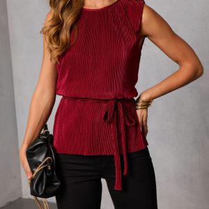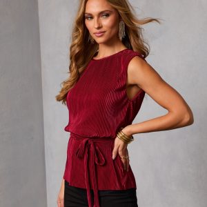 Be the first to review “Livie Pleated Satin Waist Tie Top”