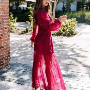 Be the first to review “Loretta Plisse Metallic Balloon Sleeve Maxi Dress”