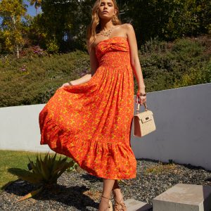 Be the first to review “Lynelle Strapless Floral Smocked Midi Dress”