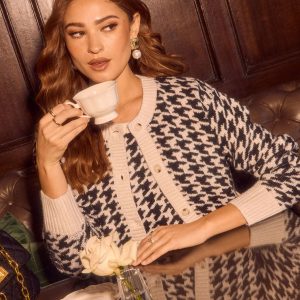 Be the first to review “Maple Meadow Contrast Trim Houndstooth Cardigan”