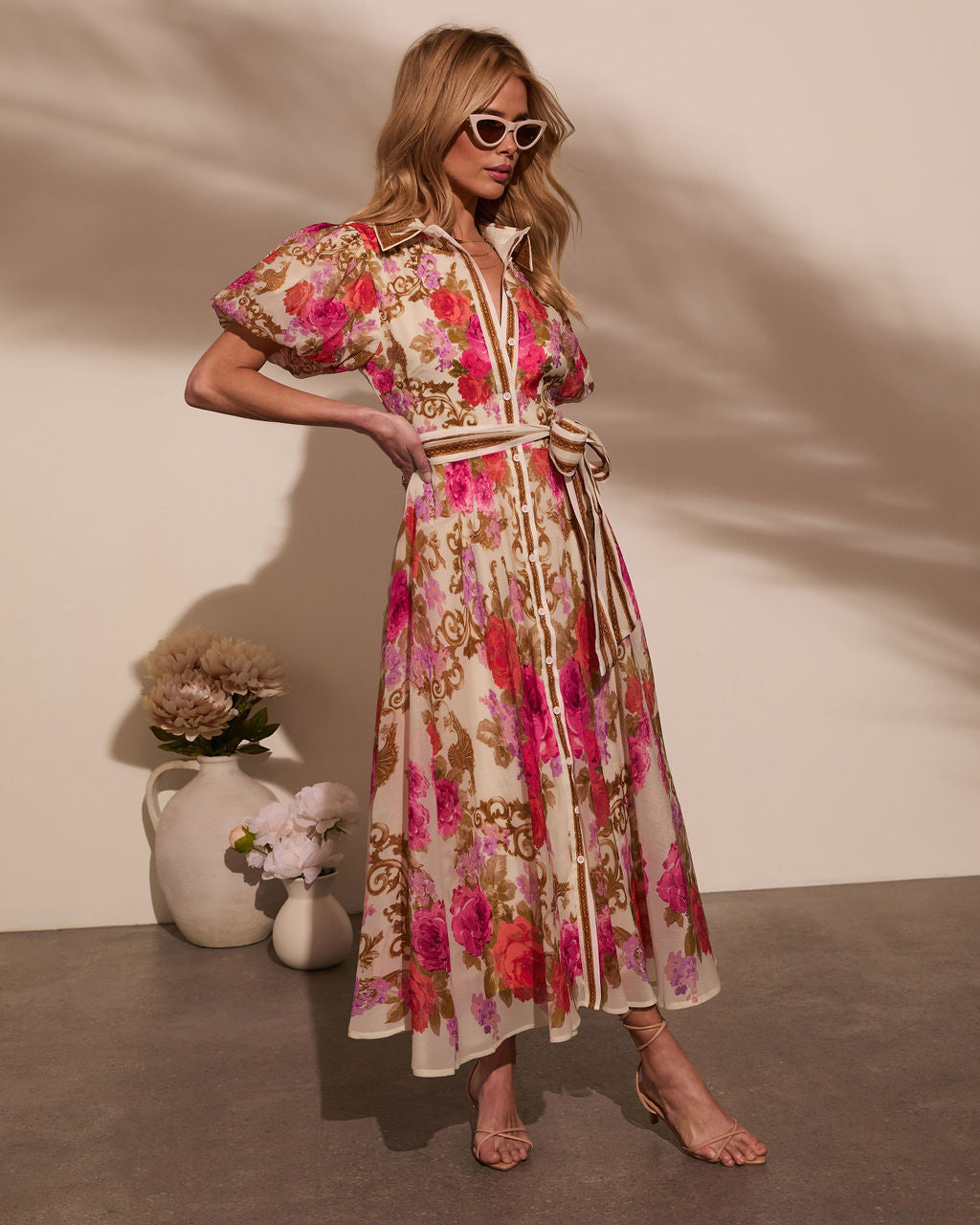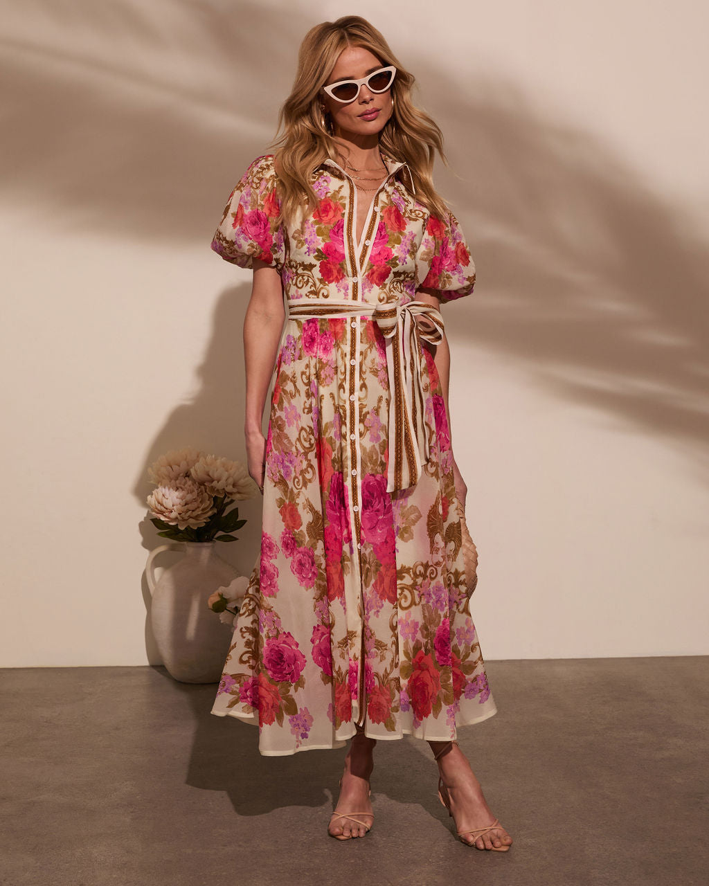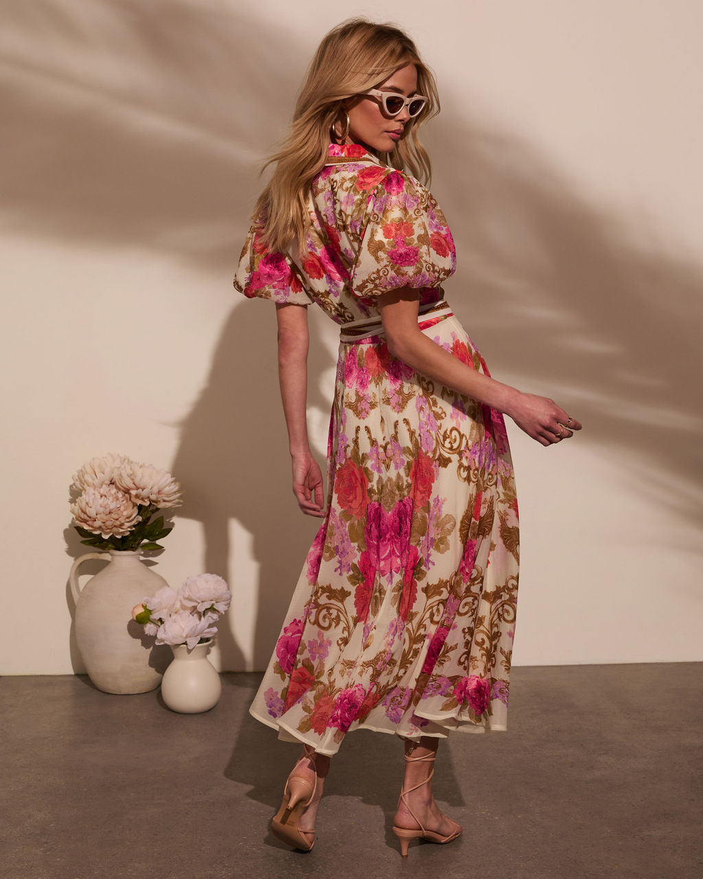 Meadowlane Floral Waist Tie Midi Dress