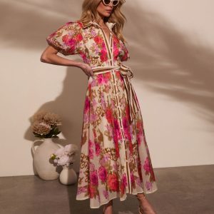 Be the first to review “Meadowlane Floral Waist Tie Midi Dress”