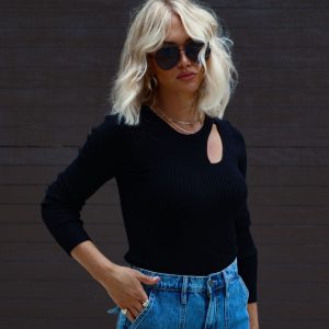 Be the first to review “Montclair Cutout Ribbed Knit Sweater Top”