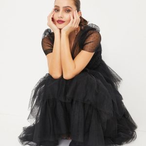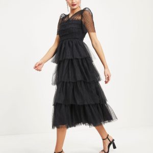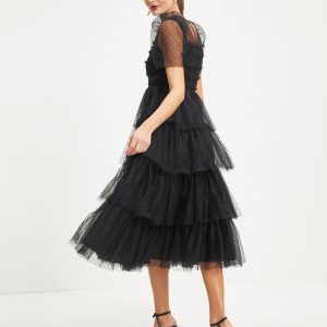 Be the first to review “Night At The Opera Tulle Tiered Polka Dot Maxi Dress”