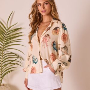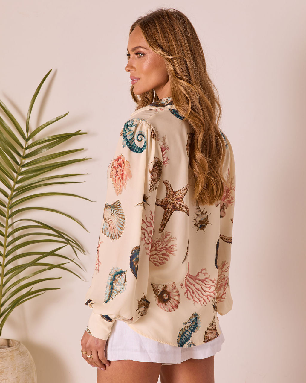 Be the first to review “Ocean Whisper Sea Life Print Button Up Top”