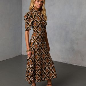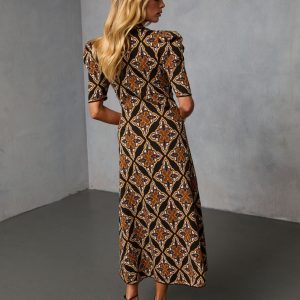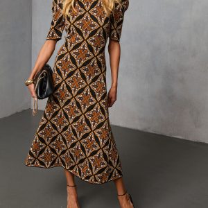 Be the first to review “Olivyne Printed Mock Neck Knit Midi Dress”
