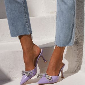 Be the first to review “Ophelia Croc Embossed Crystal Embellished Bow Mule Heels”