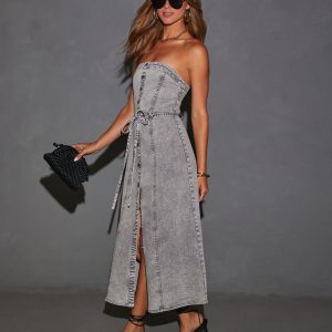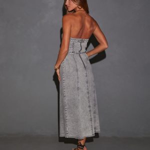 Be the first to review “Peggy Button Front Strapless Denim Maxi Dress”