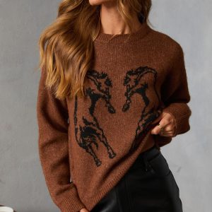 Be the first to review “Quiet Crisp Intarsia Knit Horse Sweater”