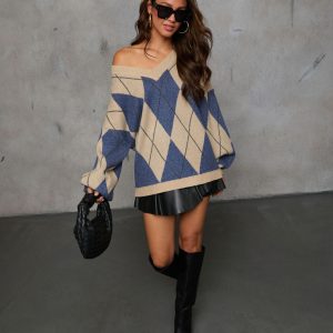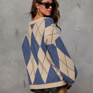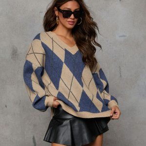 Be the first to review “Remma Argyle Print V Neck Sweater”