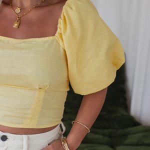 Be the first to review “Rylee Cotton Linen Blend Puff Sleeve Top”