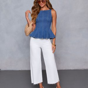 Samiah Denim Peplum Top