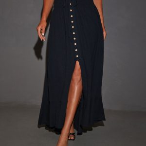 Be the first to review “Serves Up Tie Waist Button Down Maxi Skirt”