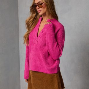 Be the first to review “Smoky Amber Ribbed Partial Button Sweater”