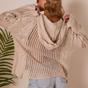 Be the first to review “Solaris Hooded Cable Knit Perforated Sweater”