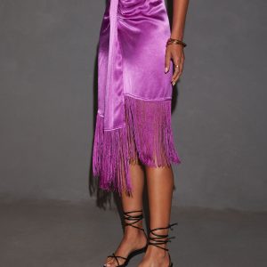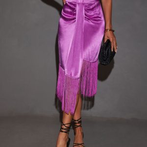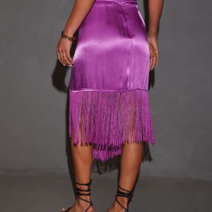 Be the first to review “Soleni Satin Fringe Hem Midi Skirt”