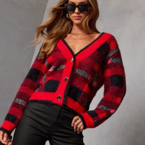 Be the first to review “Taylor Plaid Fuzzy Knit Cardigan”