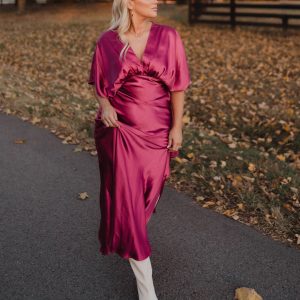 Be the first to review “Theia Satin V-Neck Maxi Dress”