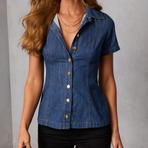 Be the first to review “Tildie Short Sleeve Button Up Denim Top”