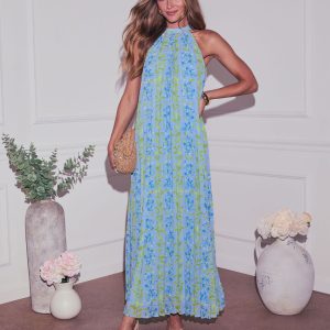 Be the first to review “Vaughn Floral Pleated Halter Maxi Dress”
