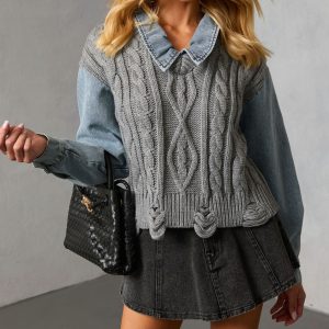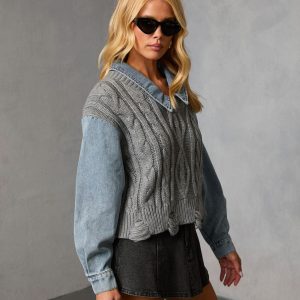 Be the first to review “Wexford Denim Cable Knit Twofer Sweater”