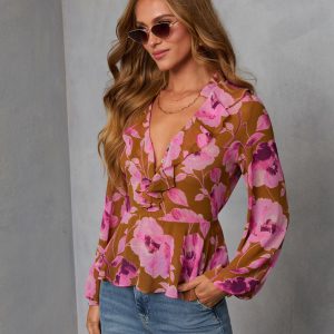 Be the first to review “Wild Fig Ruffle Chiffon Top”